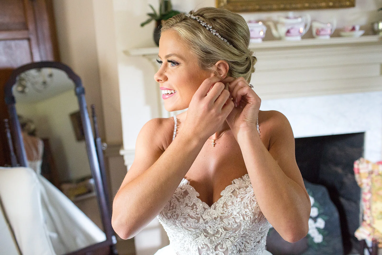 The bride wanted a clean but still romantic look. Movement in the low bun but not messy. Something that would enhance her natural beauty & compliment her dress but not detract or distract. A perfect request that seems pretty straight forward right? For the most yes but as each hair style is unique there’s almost always some unique challenge that requires a unique solution. Enter in our guaranteed awesome game plan that will allow a look to be better than ever expected.