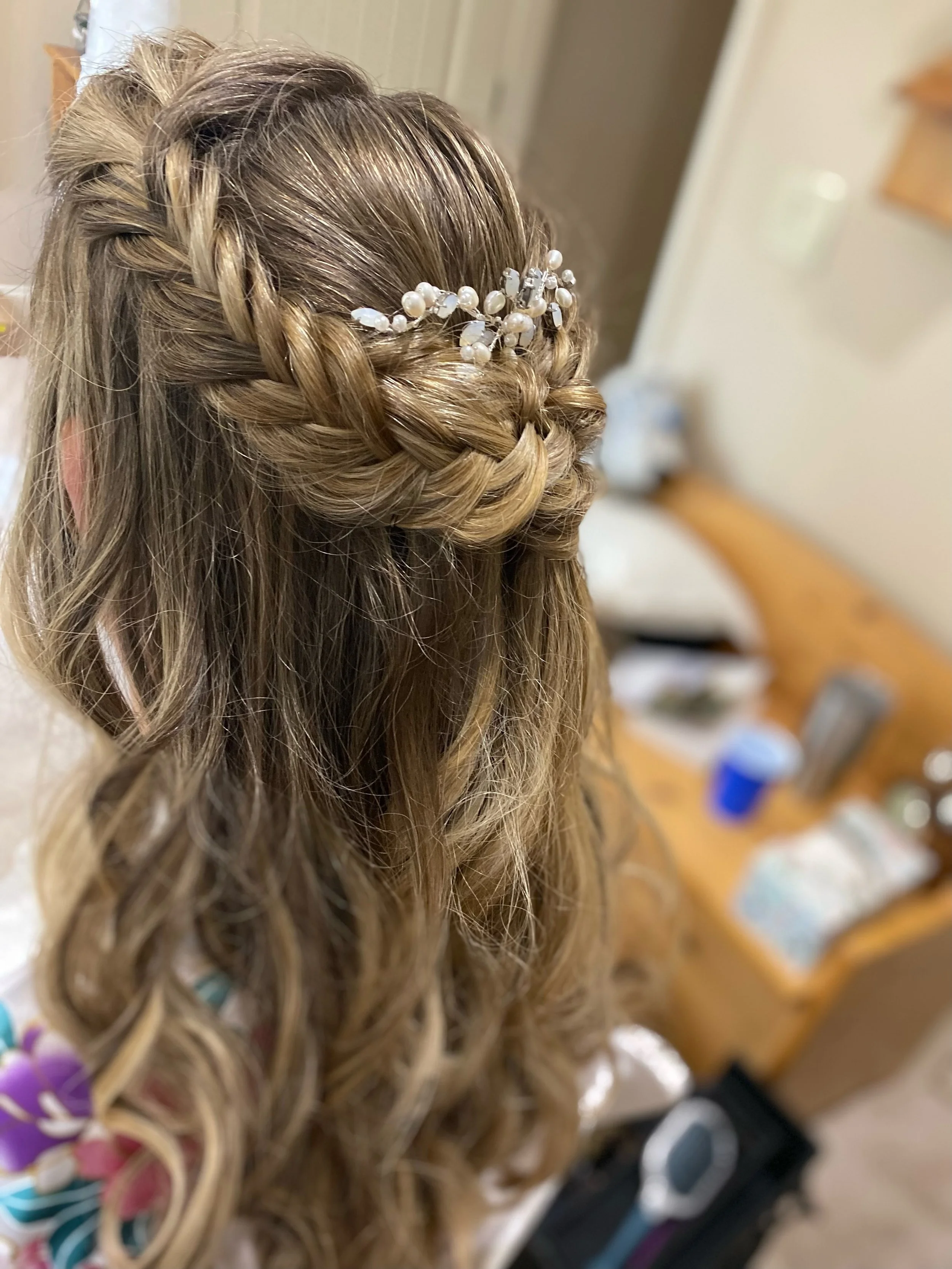 Katelyn brought to life Nicole’s dream look. It was so unique too ! A double braid bun with dutch braids feeding in. While “non-traditional” we are all here for it ! I mean what are traditions other than deceased people guilting your choices? You do you ! Nicole got married at the lovely Hampton Cove Wedding Venue in Gurley AL.